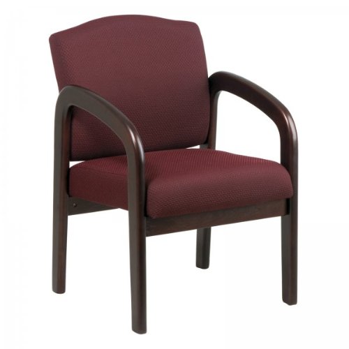 The perfect chair for any office waiting area, the Mahogany Finish Wood Visitor Chair by Office Star is sure to be your most faithful office mate. This chair features mahogany finished arms, softly cushioned seat and back, and built-in lumbar support. This chair is so comfortable - your clients will feel right at home! Weight capacity is 250 pounds. Assembly level/degree of difficulty: Moderate.