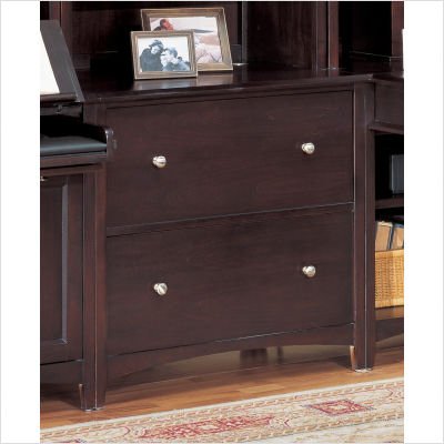 CPMOWLF Deceptively understated, the Cappuccino Collection is a complex brew of style and value. Soft curves define dramatic verticals and shapely lines. Brushed nickel handles provide bright accents and open doors to smart storage solutions for home and office. Every piece is built from hardwoods and real wood veneers finished in an 11-step process. Beneath the surface you will find quality construction techniques to provide years of reliable service. Custom design for your home. Born from the beauty of custom built-ins, the Cappuccino Modular series has value and versatility written all over it. Choose from countless configurations, using heirloom-quality pieces that are as pleasing to the eye as they are productive in the office setting. Features: -Dark cherry finish -North American hardwood solids and veneers -Deluxe pull-out keyboard tray with leather wrist rest -Double-wide file drawers with sturdy dovetail construction -Ball-bearing slides -Accommodate letter or legal sized files -Raised panel doors for rich look -Cord management channels -Some assembly required -Overall Dimensions: 31.25'' H x 32'' W x 24.75'' D