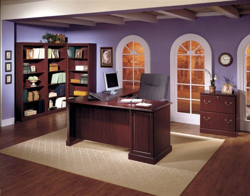 The refined elegance and splendor of timeless 18th century styling brings the Saratoga Collection to life with a rich, pleasing cherry finish. Includes: (1) Executive Desk (EX45670) (1) Lateral File (EX45654) (3) 5-Shelf Bookcase (W1615C) Features: Desk Features: Durable laminate surfaces resist scratches, abrasions and stains Non-handed; attaches to right or left side of desks Can be used as Return or optional Bridge Lateral File Features: Accommodates letter- or legal-size files Full-extension ball bearing slides Anti-tip safety feature Bookcase Hutch Features: Fits on Lateral File for added storage Matches height of Credenza Hutch Work well with lateral file EX45654 Bookcase Features: Three adjustable shelves for storage flexibility One fixed shelf for structural strength Decorative side, top and bottom rails Coordinates with Saratoga Executive Collection Dimensions: Desk: 66 1/8"(W) x 71 1/4"(D) x 30 1/2"(H) Lateral File: 26 7/8"(W) x 19 3/8"(D) x 30 5/8"(H) Bookcase: 29.63"(W) x 12.63"(D) x 71.75"(H) Finish: Harvest Cherry