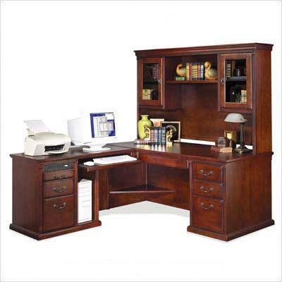 HCR684L, HCR682, HCR684L-R The Huntington Club Office collection features traditional cherry office furniture with a rich distressed finish on real cherry veneers and hardwood solids. Buy them separately or together to form a beautiful set. This three piece set includes the executive desk, a LHF computer return and a hutch to form a functional l-shaped desk. This executive desk has two box drawers, one file drawer and one extra-wide pencil drawer. The computer return has an extra-wide pullout keyboard drawer and a CPU tower storage space and two utility drawers and one additional file drawer. A power center with surge protection is also included. The hutch has two glass door storage cabinets, an open, adjustable bookshelf and a built-in task-light. Features: -Distressed Cherry finish -4 utility drawers and 2 file drawers -2 extra-wide pullout keyboard/pencil trays -Built-in task-light -Hand rubbed lacquered finish -Ships fully assembled (please check doorway widths to ensure delivery of your desk) -10 year manufacturer warranty Specifications: -Overall dimensions of desk: 29'' H x 68.25'' W x 32'' D -Overall dimensions of computer return 29'' H x 49'' W x 21'' D -Overall dimensions of hutch: 43'' H x 68'' W x 16.5'' D TEN YEAR LIMITED WARRANTY: -All Martin Furniture products carry a TEN YEAR limited warranty to be free of manufacturing defects in workmanship. -The Martin Furniture warranty is only valid when you purchase from an authorized retailer of Martin Furniture. -Please contact us for more detail on this TEN YEAR LIMITED WARRANTY! About Kathy Ireland Home by Martin: Kathy Ireland Home by Martin celebrates the exclusive partnership for the design and production of Home Office, Wall Systems and Home Theater furniture, specializing in ''...finding solutions for families, especially busy Moms.'' They invite you to experience the extraordinary furnishings in these two exciting categories. Kathy Ireland Home by Martin is a wonderful resource for today s families