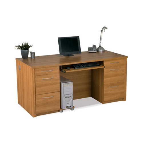 The Embassy Collection by Bestar is known for its versatility and durability. All products in this collection feature durable 18217;8217; commercial grade work surfaces with a melamine finish that resists scratches, stains and burns, as well as deluxe 2.5mm shock resistant PVC edge-banding. File drawers and keyboard shelves feature ball-bearing slides. The Embassy Collection is offered in a choice of three warm finishes; Tuscany Brown, Maple, and Cappuccino Cherry, and are sure to enhance the environment of any room. Features: Cappuccino Cherry finish Durable 1" commercial grade work surface Scratch resistant melamine finish Keyboard tray CPU stand File drawers Deluxe 2.5mm shock resistant PVC edge-banding Specifications: Overall Dimensions: 30.4" H x 66" W x 29.8" D Shipping Weight: 243 lbs The American National Standards Institute (ANSI) and the Business and Institutional Furniture Manufacturer's Association (BIFMA) work together to produce voluntary standards that provide a common basis for evaluation of product safety, durability and structural adequacy. Bestar meets ANSI,BIFMA standards and is considered appropriate in quality and durability to meet the demands of commercial office use.