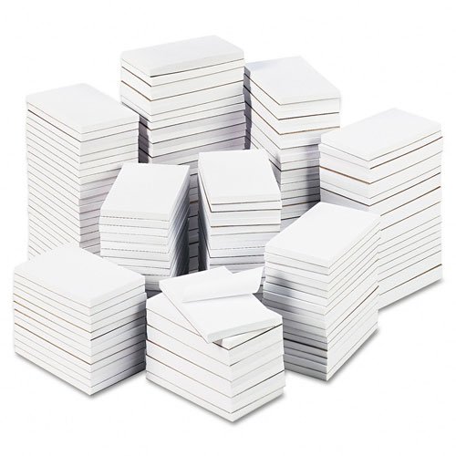 Great for the home or office-anywhere you need to jot down a note. Basic plain white paper, gummed top. In 25-lb. cartons. Pad Type: Scratch; Sheet Size: 3" x 5"; Ruling: Unruled; Number of Sheets per Pad: 100.