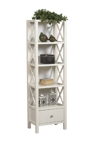 Home Office Narrow Bookcase X Design Sides in Antique White Review